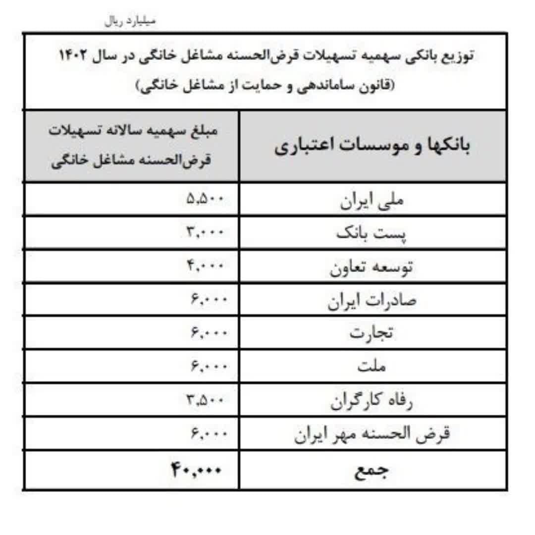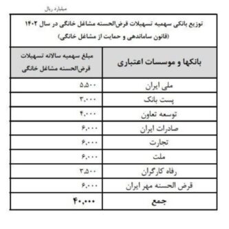 ابلاغ سهمیه تسهیلات قرضالحسنه مشاغل خانگی