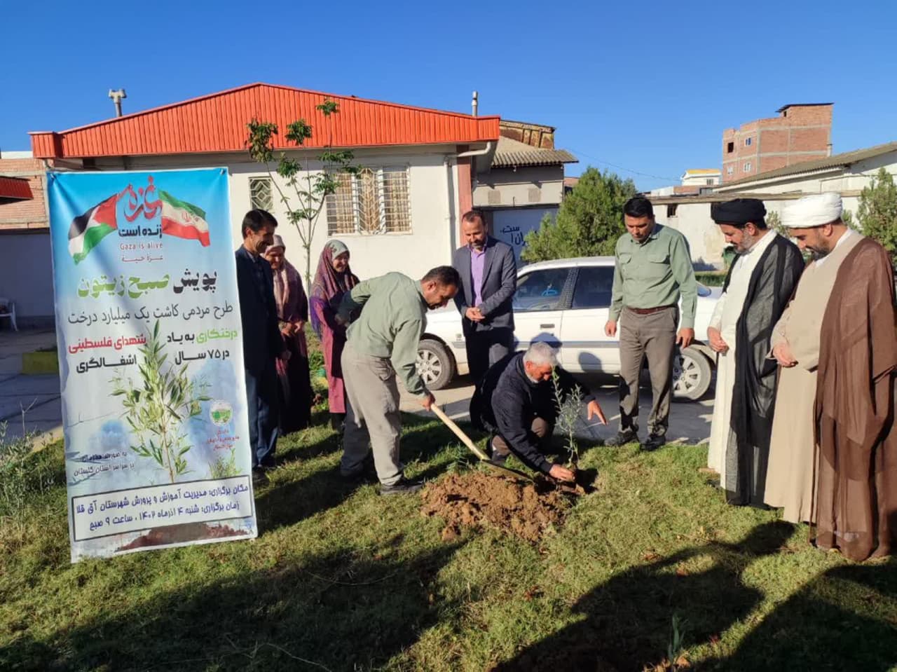 به صورت همزمان با سراسر کشور، مراسم نمادین کاشت نهال به یاد شهدای غزه و ۱۰۰ هزار شهید فلسطینی در طی ۷۵ سال اشغالگری تحت عنوان “پویش صبح زیتون” با حضور جمعی از مدیران و مسئولین شهرستانی، روحانیون، جمعیت هلال احمر، مدیران مدارس و خانواده های شهدا با هماهنگی اداره منابع طبیعی با غرس نهال زیتون در محل مدیریت آموزش و پرورش شهرستان آق قلا برگزار گردید.