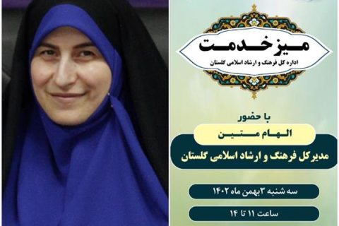الهام متین، مدیرکل فرهنگ و ارشاد اسلامی استان گلستان، میز خدمت این اداره کل را در روز سه شنبه ۳ بهمن ماه در محل اداره